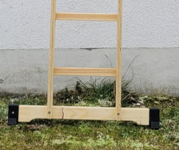 Holme aus Fichtenholz, mit flachen Hartholztritten aus Buche, 80 mm breit, gerippt und verschraubt.